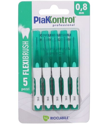 Ideco Srl Plakkontrol FlexiBrush 0,8mm, Scovolino Interdentale, 5 Pezzi, Manico Ergonomico, Igiene Orale