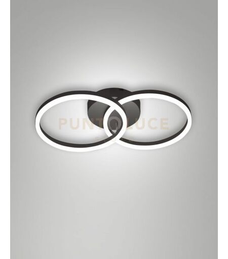 Fabas Giotto Applique Nera D.30+d.30cm 2 Luci A Led 3000k - 36w - 3780 Lm Dimmerabile