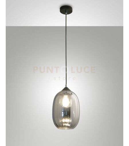 Lampadario A Sospensione In Vetro Soffiato A 1 Luce Colore Fum㨠E Struttura In Metallo Colore Nero, Altezza Regolabile Fino A 200cm. Diametro Vetro 20cm, Attacco Lampadina E27. ...
