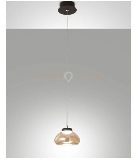 FABAS LUCE Arabella sospensione ambra 1 luce in vetro e struttura in metallo a led 3000K - 8W - 750 lm, D.14CM