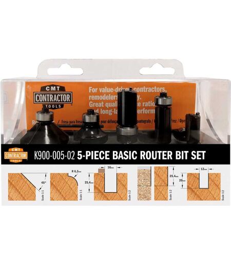 Cmt 5 FRESE TAGLIENTI DRITTI E PROFILATE K900 005 02 CODOLO Ø 8 mm HW DAL Ø4 AL Ø 20 mm