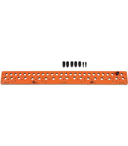 CMT900 DIMA FORATURA UNIVERSALE 900mm (26/18/32 +18 FORI CERN) Dima per foratura universaleCMT900La dima di foratura universale è progettata per una precisa tassellatura manuale sul piano, con aumento della produttività, di elementi per mobili con viti euro-system da 32mm, per la realizzazione di fori per supporti scaffali con diametro di 3 e 5mm e per la realizzazione e marcatura di fori per cerniere. La dima CMT900 consente di realizzare preforature per i tipi di cerniere maggiormente utilizzati.Costruzione di giunzioni a perno o a vite nel piano.Foratura per reggiscaffali.Foratura per cerniere.DATI TECNICI:• Larghezza max tavola con fissaggio:..........900mm.• Larghezza max tavola:..........nessun limite.• Spessore tavola:..........nessun limite.• Per perni:..........Ø8mm.• Distanza dei fori:..........32mm.• Numero dei fori:..........26.• Per supporti per scaffali:..........Ø3mm, Ø5mm.• Per cerniere:.......... Ø3mm per viti da legno.Ø5mm per viti standard.LA DIMA DI FORATURA CMT900 ...