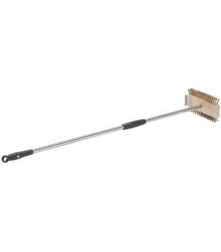 Spazzola doppia ottone/acciaio per pulizia griglia con raschietto. Il manico in acciaio inox ha l'impugnatura intermedia scorrevole in polimero ad alta densità, ad alta resistenza agli urti e al calore. Le setole in acciao permettono di eliminare lo sporco più difficile, mentre quelle in ottone sono perfette per spazzolare la griglia dallo sporco residuo. _x005F_x000D_ Misure: 20x11,7 cm, manico 100 cm. Peso 0,90 kg ...