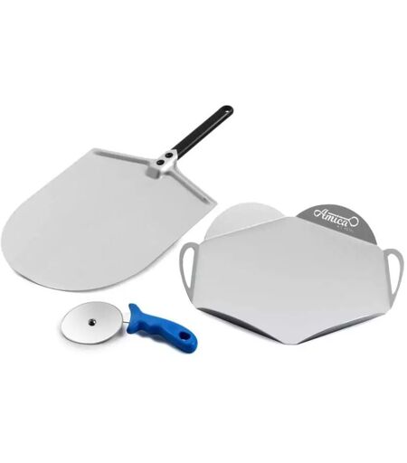 Kit "Casa mia" con pala 35 cm, vassoio e rotella 10 cm - Gimetal.Kit "Casa mia" marchiato Gimetal con 3 pezzi. Ideale per sfornare deliziose pizze a casa tua come al ristorante! Il kit incluse una pala per pizza realizzata in alluminio anodizzato con manico di 25 cm e testa di 35 cm. Un vassoio in alluminio a forma esagonale e bordi rialzati per permettere , in seguito, un corretto taglio della pizza. E una rotella professionale dotata di lama in acciaio inox di 10 cm, con manico in plastico e certificato alimentare. Il kit è perfetto per aiutarti a cucinare vere e proprie pizze, divertendoti in cucina! Caratteristiche del prodotto Colore Grigio Marca Gimetal Dimiensioni prodotto Peso: 1.227 Kg. Dimensioni Imballo Larghezza: 57.0 cm. ...