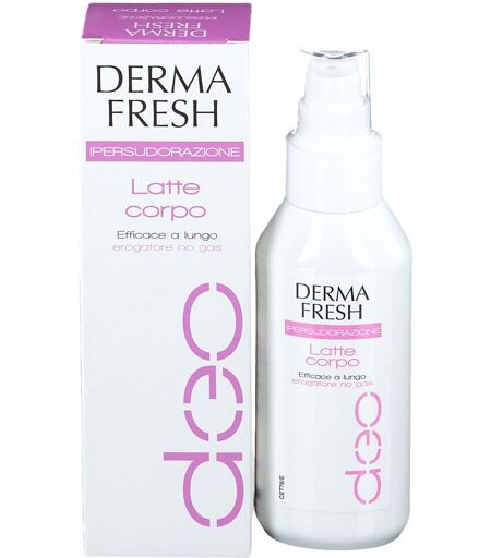 Dermafresh Ipersudorazione LATTE CORPO Latte ad azione deodorante protratta, studiato per chi ha problemi di traspirazioneeccessiva specie nelle zone ascellari e inguinali. A base di componenti rigorosamente selezionati e testati, garantisce un’efficaceregolazione della sudorazione e una fresca deodorazione per tutto il giorno. Privo dialcool e arricchito con estratto di camomilla. Applicare sulla pelle perfettamente pulita e asciutta e massaggiare delicatamente fino acompleto assorbimento. Componenti Aqua; aluminum chlorohydrate; PPG-15 stearyl ether; steareth-2; steareth-21; cetearylalcohol; dimethicone; 1midazolidinyl urea; propylene glycol; chamomilla recutita extract;triclosan; profumo; methylparaben; propylparaben; linalool; limonene; butylphenylmethylpropional; hexyl cinnamal; farnesol; geranol; citronellol; coumarin; alphaisomethyl ionone. Formato Flacone da 100 ml. ...