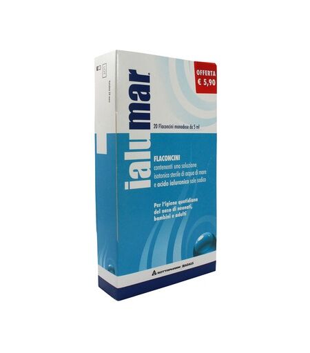 ialumar FLACONCINI Contenenti una soluzione isotonica sterile di acqua di mare a acido ialuronico sale sodico Per l'igiene quotidiana del naso di neonati, bambioni e adulti Indicati per instillazioni e igiene nasale quotidiana di neonati, bambini e adulti. Facilita l'eliminazione delle secrezioni n… ...