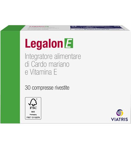 LEGALON E - 1. Categoria di appartenenza - Integratore alimentare a base di Cardo mariano e Vitamina E. - 2. Forme - - Legalon E 30 compresse rivestite con film. - 3. Composizione qualitativa e quantitativa - Ogni compressa rivestita da 720 mg apporta: - estratto secco di Cardo mariano pari a 210 m… ...