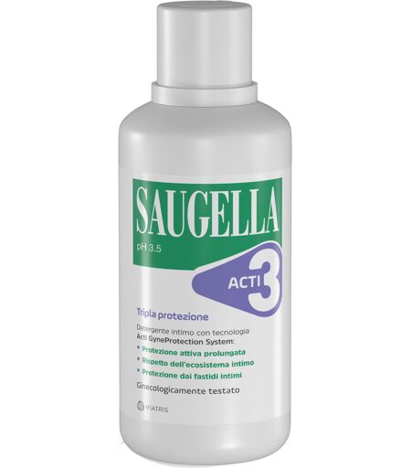 SAUGELLA ACTI3 - Descrizione Detergente intimo con tecnologia Acti GyneProtection System. La sua formula è testata clinicamente e scientificamente per assicurare una triplice protezione. Inoltre, l'estratto di timo, un antibatterico naturale, e lo zinco svolgono un'efficace azione sinergica e prote… ...