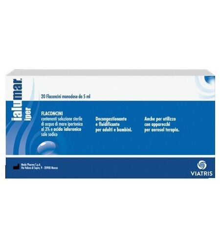 Ialumar Iper Soluzione Ipertonica 3% Ha un effetto drenante (osmotico) che facilita la decongestione delle mucose nasali e la fluidificazione del muco. Da' sollievo alla secchezza delle mucose nasali grazie all'acido ialuronico che ne favorisce l'umidificazione. Utile quindi per mantenere la pulizia delle fosse nasali particolarmente nelle fasi acute di malattie da raffreddamento, riniti allergiche, sinusiti e rinosinusiti. La soluzione contenuta nei flaconcini può essere usata anche per aerosol terapia. Si aggiunge e non sostituisce altri trattamenti eventualmente prescritti dal medico. Ialumar Iper flaconcini associa l'azione benefica e fluidificante dell'acqua marina all'effetto idratante dell'acido ialuronico. La soluzione al 3% contenuta in Ialumar Iper flaconcini aiuta a drenare il liquido in eccesso presente nelle cavità nasali; l'acido ialuronico idrata la mucosa, grazie alla sua proprietà di richiamare acqua, favorendo la cicatrizzazione di eventuali microlesioni e attenuando gli effetti della secchezza della mucosa nasale derivata dall'ipertonicità della soluzione. Modo d´uso: I flaconcini sono monodose e devono essere utilizzati una sola volta. Ingredienti: Ogni flaconcino contiene 5 ml di soluzione sterile pronta all'uso di acqua di mare ipertonica (3%), acido ialuronico sale sodico (0,2%) e idrossido di sodio. Formato: 20 flaconcini monodose da 5 ml. ...