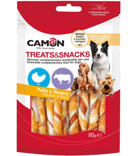 camon spa Camon Cane Snack Rolls Bicolore Bovino, Suino & Pollo 80 Gr