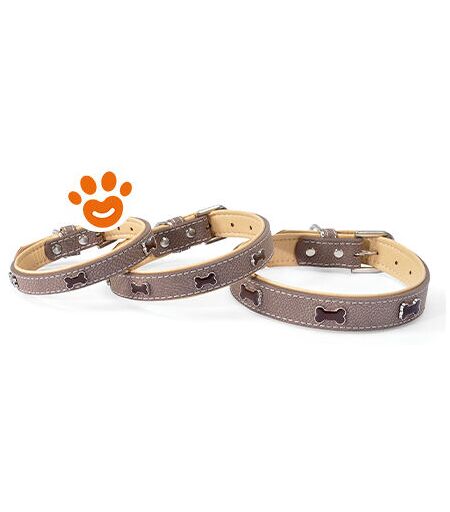 Collare modello "Timber" Il collare del modello "Timber" è impreziosito da decori metallici a forma di osso. Il collare è doppio per aumentarne la sicurezza e la morbidezza. Adatto a cani di media e grande taglia. ...