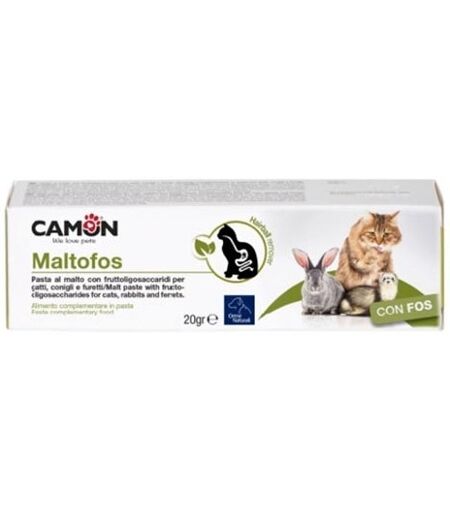 Pasta al Malto con FOS Maltofos è un appetitoso alimento complementare per gatti, conigli e furetti che, aggiunto al cibo o somministrato direttamente, aiuta a mantenere il normale equilibrio della flora intestinale. Inoltre il suo utilizzo favorisce l’eliminazione naturale dei boli di pelo inghiottiti. Basta aggiungere alla dieta giornaliera questa pasta ricca di sciroppo di malto, fruttoligosaccaridi e vitamine per contribuire a mantenere regolari le funzioni del tratto gastro-intestinale. Per un amico quattrozampe in perfetta forma. Modalità d'uso somministrare circa 2-3 g (4-6 cm) al giorno. Formato 20g ...