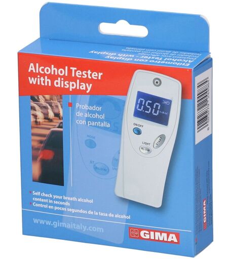 Gima Alcoholimetro - Etilometro Con DisplayETILOMETROApparecchio compatto per misurare la concentrazione d’alcol nell'alito; dotato di un’interfaccia grafica digitale con animazioni.Apparecchio utilizzabile con una sola mano.Valori ‰ BAC.Ampio display retroilluminato a 2 colori per visualizzare il valore esatto riscontrato.Se il risultato supera la soglia limite di tasso alcolico, il display visualizza la scritta NON GUIDARE.Fornito in scatola di cartone con tre tubi Ø 7 mm in cui soffiare.Manuale e scatola multilingue: GB, FR, IT, ES, PT. ...
