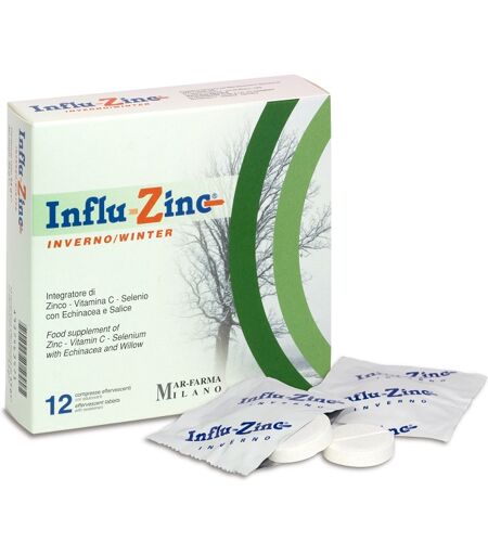 INFLU - ZINC INVERNO - Descrizione Integratore alimentare che aiuta a difendere l'organismo dai primi sintomi del raffreddore. - Ingredienti Zinco vitamina C selenio echinacea salice. Modalità d'uso 1 compressa effervescente da sciogliere in abbondante acqua (200 ml) due volte al giorno. Forma… ...