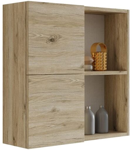 MAMA STORE Atena Pensile Doppio 2 Ante con vani a Giorno, Quercia Naturale, L.71 x P.22 x H71 cm -