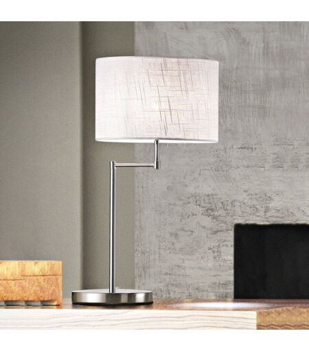 PERENZ Round hotel Lampada da tavolo cromo paralume in tessuto bianco attacco E27 braccio snodato