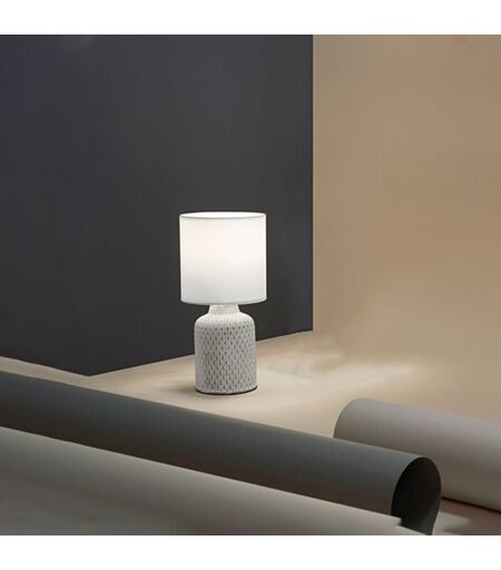 PERENZ Provenza Lampada da tavolo in ceramica bianca disegno in rilievo con paralume bianco attacco E14