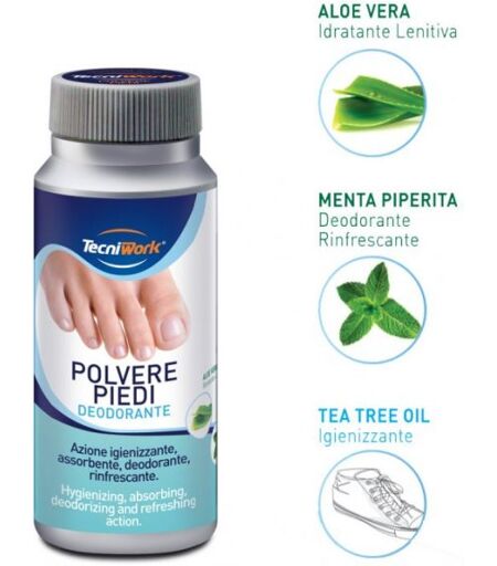 TecniWork - Polvere Piedi - Descrizione Polvere per piedi igienizzante, deodorante, assorbente e rinfrescante. Specifica per assorbire l'umidità tra le dita dei piedi, eliminare i cattivi odori, igienizzare e rinfrescare. Controlla gli odori e regola la traspirazione interdigitale. La polvere di Ta… ...