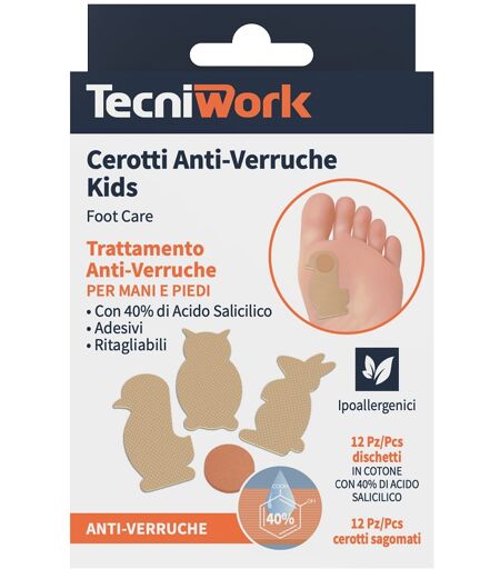 Cerotto Anti - verruche Kids - Descrizione Cerotti per trattamento anti verruche di mani e piedi, specifico per bambini. Cerotti ritagliabili e ipoallergenici, per adattarsi comodamente alla forma di mani e piedi. Il dischetto in cotone con 40% di Acido Salicilico va applicato direttamente sulla ve… ...