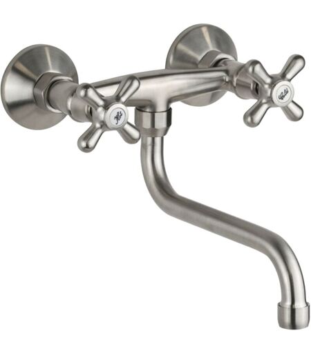 GATTONI RUBINETTERIA - Lavello cucina a parete doppia manopola in colore nichel spazzolato Gattoni 7550/RENS Nichel spazzolato