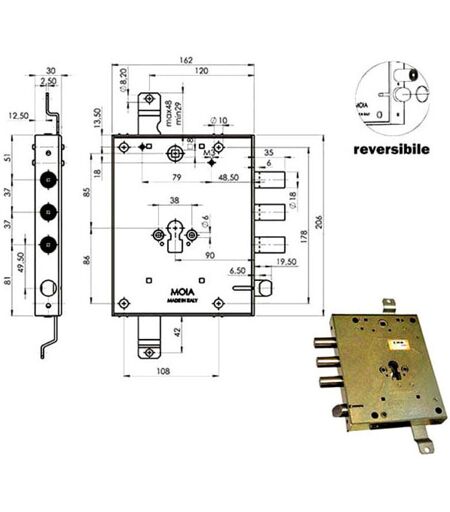MOIA SPA Serratura Sic.Triplice Dx Cil.E89 Rmga664/373 Moia