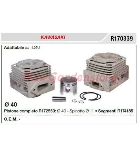 Cilindro pistone completo R172550 Ø 40mm spinotto Ø 11mm SEGMENTI R174185 per decespugliatore TD40 KAWASAKI Codice: R170339 Codice originale: AT ...