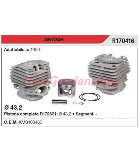 Cilindro pistone completo R172631 SEGMENTI per motosega 4600 ZENOAH Codice: R170416 Codice originale: KM0403460 AT ...