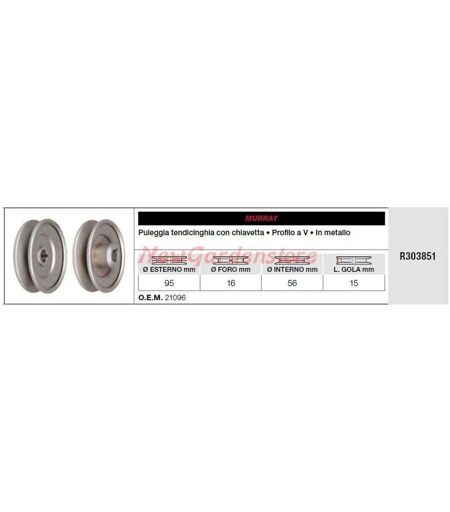Puleggia tendicinghia con chiavetta profilo a V in metallo per trattorino tagliaerba tosaerba rasaerba Ø esterno: 95mm Ø foro: 16mm Ø interno: 56mm L. gola: 15mm MURRAY Codice: R303851 Codice originale: 21096 AT ...