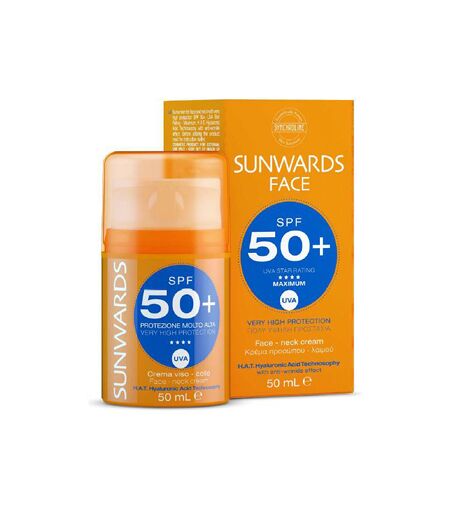 SUNWARDS FACE - SPF 50+ PROTEZIONE MOLTO ALTA Descrizione Crema solare viso e collo con protezione molto alta SPF 50+. H.A.T. Hyaluronic Acid Technosophy a effetto anti - rughe. Senza profumo. Modalità d'uso Prima dell'utilizzo leggere il foglietto illustrativo. Avvertenze Prodotto cosmetico per us… ...