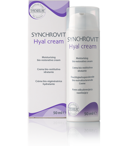 SYNCHROVIT Hyal cream - Descrizione Crema innovativa in grado di migliorare l'aspetto della cute. La sua azione funzionale permette di agire in modo efficace sui segni di crono e fotoinvecchiamento, controllando qualità e quantità di acido ialuronico nella pelle e ostacolandone la depolimerizzazion… ...