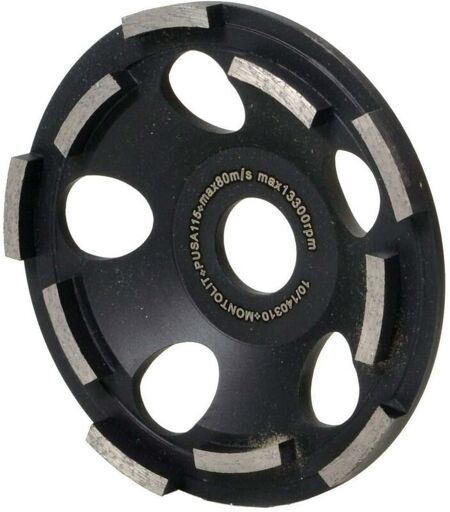 Mola diamantata a settori per Levigatura Montolit PUSA180 Diametro disco: 180 mm Diametro foro: 22,2 Utilizzo: a secco o ad acqua Materiali: materiali edili abrasivi Applicazioni: levigatura di superfici, ripristino pavimenti, livellamento pavimenti e muri, asportazione bave di calcestruzzo. Prestazioni: Velocità: elevata Finitura: buona Durata: molto elevata Attrezzatura: macchine smerigliatrici dotate di aspirazione delle polveri. Utensile autoravvivabile ...