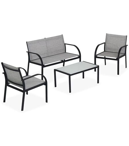 GARDEN FRIEND - Salotto Da Giardino 2 Poltrone 1 Divano 1 Tavolo Nero-Grigio