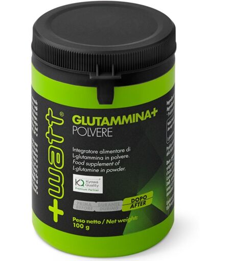 +watt Glutammina+ Polvere 100g. Svolge Unazione A Sostegno Del Recupero Muscolare E Del Sistema Immunitario. Kyowa Quality. La Glutammina È L'Aminoacido Più Presente All'Interno Dell'Organismo. Si Tratta Di Un Aminoacido Semiessenziale: In Circostanze Normali L'Organismo È In Grado Di Sintetizzarne Una Quantità Sufficiente Ma In Caso Di Aumentato Fabbisogno Non È In Grado Di Far Fronte Alle Esigenze. ...
