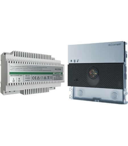 Kit Base Impianto audio/video Comelit espandibile serie Ultra per sistema Simplebus 2. Il kit è composto da: 1 modulo audio/video 2 fili art. UT2020 1 alimentatore 2 fili art. 1210A. Caratteristiche UT2020 Modulo Audio/video Comelit ULTRA SIMPLEBUS2: Da utilizzare in impianti con alimentatore art. 1210 / 1210A Facile da installare e semplice da configurare grazie alla programmazione smart dei pulsanti di chiamata. Sensore crepuscolare per lo spegnimento automatico della retroilluminazione dei cartellini portanome durante le ore diurne Microfono digitale omnidirezionale e doppio altoparlante per un audio ad alta fedeltà Telecamera a colori grandangolare (campo visivo: 120° orizzontale, 90° verticale) Segnalazioni audio/visive di ausilio per i diversamente abili attivabili tramite programmazione. Predisposto per 2 pulsanti di chiamata Da completare con tappo, pulsante singolo o pulsante doppio realizzati in plastica professionale con trattamento anti-ingiallimento e antiopacizzazione ...