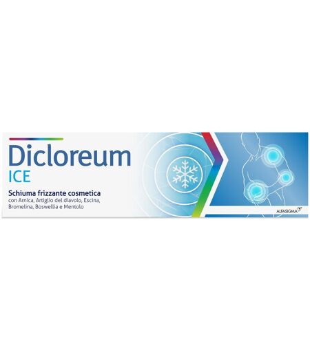 Dicloreum ICE - Descrizione Schiuma cosmetica ad effetto frizzante, studiata per favorire il benessere della pelle in caso di traumi e contusioni che possono capitare durante le attività quotidiane e sportive. Dicloreum ICE è adatto in tutti i casi sia necessaria l'applicazione del freddo, donando … ...