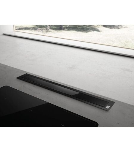 Elica Pandora BL/F/90. Potenza massima di estrazione: 496 m³/h, Tipo di estrazione: Aspirante/Filtrante, Classe di efficienza dinamica del fluido: C. Tipo: Aspirazione verso il basso, Colore del prodotto: Nero, Tipo di controllo: Touch. Tipo di filtro antigrasso: Alluminio/Carbone. Consumo energetico annuo: 80 kWh, Potenza motore: 250 W, Classe di efficienza energetica (vecchia): A. Larghezza: 835 mm, Profondità: 120 mm, Altezza: 150 mm ...