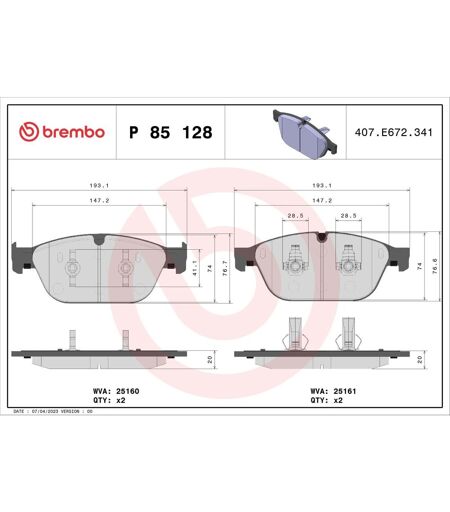 Indice: P 85 128. Numero del Produttore: P 85 128. Produttore: BREMBO. ...