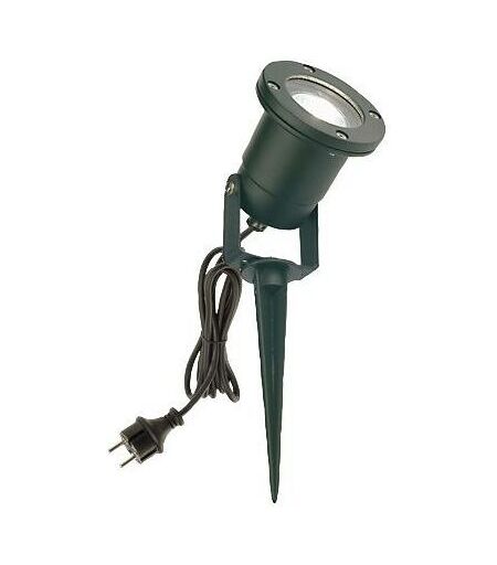Faretto orientabile in pressofusione di alluminio. Con staffa per fissaggio e picchetto. Diffusore in vetro trasparente. Altezza massima lampada: 57mm. Porta lampada GU10. Cavo di alimentazione H05RN-F3G1 da 2 metri con spina schuko. Pressacavo PG7. Alimentazione 230 V ~ 50 Hz. Classe di protezione: IP44 Potenza massima lampade: 50W ...