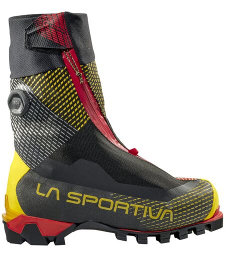 La Sportiva G-Summit scarponi alta quota pensati per alpinismo tecnico, arrampicata su ghiaccio e alta montagna, perfetti per le condizioni più estreme, prodotto risuolabile per il contenimento dell'impatto ambientale. tessuto idrorepellente, elasticizzato, resistente all’abrasione e termonastrato con soffietto interno idrorepellente scafo interno Heat-Tech™ a costruzione overlap per massima termicità e leggerezza costruzione overlap dello scafo ed ampi volumi d’ingresso per facilità e velocità di calzata regolazione dell’allacciatura rapida grazie al sistema di chiusura BOA® Fit System posto esternamente alla ghetta e pensato per le operazioni di chiusura ed apertura con i guanti in ambienti freddi massima adattabilità alle diverse morfologie di piede per la massima precisione in fase di arrampicata battistrada Ice-Tech™ diviso in due parti per massimizzare le performance in fase di scalata e camminata ...