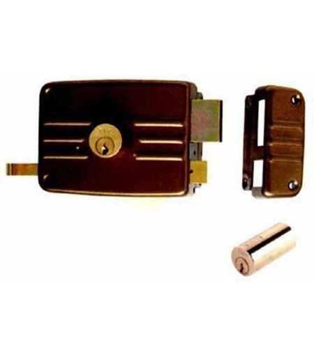 Descrizione Serratura da applicare per serramenti in legno. Con cilindro interno ed esterno fisso mm 26x50. Scrocco separato con tirante interno e richiamo con chiave esterno. 3 mandate. Mano sinistra. Dotazione: bocchetta, viti fissaggio, 3 chiavi. Dimensione: 70 mm. N.B. Per qualsiasi dubbio o chiarimento in merito alla serratura: Es. Mandate, chiusura e apertura, verso/direzione, misure, ecc. NON ESITATE A CONTATTARCI. ...