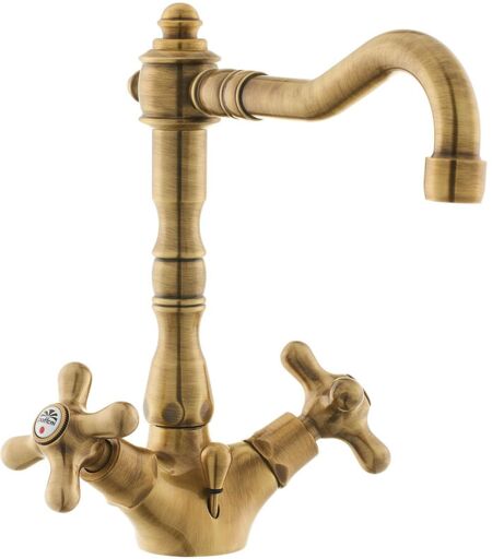 PAFFONI Miscelatore per lavabo Ricordi XL con scarico e scarico a scomparsa, design vintage, bronzo (IR085BR)