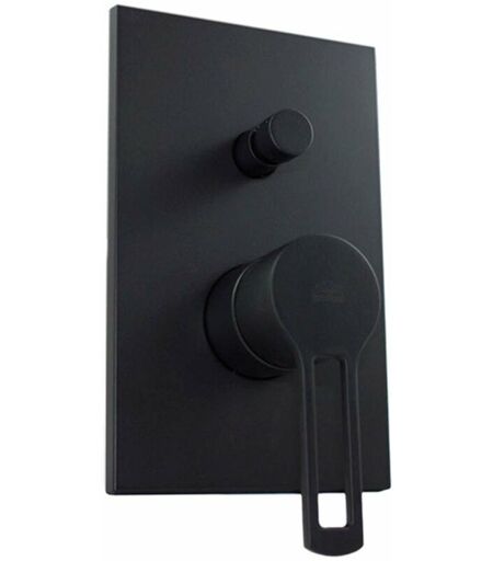 Miscelatore ad incasso per doccia deviatore a pressione per 2 uscite finitura: opaca nera comando a leva rosetta di copertura: 120 x 190 mm attacco dell'acqua: G 1/2 collegamento in basso: G 3/4 installazione sul corpo di montaggio ad incasso che fa parte del miscelatore ...