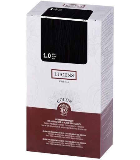 Tinta senza Ammoniaca 1.00 - Nero Lucens Umbria: Colorazione permanente senza ammoniaca. Dona una copertura perfetta ai capelli bianchi, regalando un colore vivo, omogeneo e brillante. Per capelli colorati. Con olio di cocco, olio di girasole, verbasco, elicriso, lino, camomilla e calendula. Unisci il colore nel tubetto ed il rivelatore, miscela ed applica. Il Tinta senza Ammoniaca 1.00 - Nero di Lucens Umbria è una colorazione permanente senza ammoniaca per capelli colorati. A base di olio di cocco, olio di girasole, verbasco, elicriso, lino, camomilla e calendula che assicurano una copertura perfetta dei bianchi, donando un colore vivo, omogeneo e brillante. Gli estratti naturali migliorano la tollerabilità del cuoio capelluto, proteggendo ed idratando i capelli durante la colorazione. Consigli d'uso: Versa il contenuto della crema colorata in una ciotola. Mescola insieme all' Attivatore. Distribuisci in maniera uniforme, attenzionando le radici, con l'aiuto di un pennello e lasciando in posa per 35 minuti. INCI AQUA (WATER/EAU), LAURETH-3, CETEARYL ALCOHOL, LAURETH-4, ETHANOLAMINE, POLYSORBATE 80, TOLUENE-2,5-DIAMINE SULFATE, SORBITAN STEARATE, GLYCOL DISTEARATE, SODIUM C14-16 OLEFIN SULFONATE, COCAMIDOPROPYL BETAINE, GLYCERIN, GLYCERYL STEARATE SE, GLYCERYL ISOSTEARATE, COCOS NUCIFERA OIL (COCOS NUCIFERA (COCONUT) OIL), SORBITAN OLEATE, OLEIC ACID, STEARIC ACID, m-AMINOPHENOL, 2,4-DIAMINOPHENOXYETHANOL HCL, BETAINE, POLYQUATERNIUM-22, HYDROGENATED CASTOR OIL, CETEARETH-20, PALMITIC ACID, SODIUM SULFITE, SODIUM HYDROSULFITE, LECITHIN, TETRASODIUM EDTA, CETEARETH-33, VERBASCUM DENSIFLORUM FLOWER/STEM EXTRACT*, HELICHRYSUM ITALICUM EXTRACT*, COTA TINCTORIA FLOWER/LEAF/STEM EXTRACT*, LINUM USITATISSIMUM SEED EXTRACT (LINUM USITATISSIMUM (LINSEED) SEED EXTRACT)*, CALENDULA OFFICINALIS FLOWER EXTRACT*, HELIANTHUS ANNUUS SEED OIL (HELIANTHUS ANNUUS (SUNFLOWER) SEED OIL)*, CITRIC ACID, ERYTHORBIC ACID, ETIDRONIC ACID, SODIUM BENZOATE, BENZYL ALCOHOL, POTASSIUM SORBATE, PHENYL METHYL PYRAZOLONE, 4-CHLORORESORCINOL, p-METHYLAMINOPHENOL SULFATE. *Da agricoltura biologica Controlliamo con cura le descrizioni dei nostri prodotti ma alcuni dati riportati sulla confezione del prodotto (INCI, consigli di utilizzo, certificazioni) possono variare in base agli aggiornamenti dei produttori. Non sempre questi aggiornamenti ci vengono comunicati e può capitare che le informazioni sulla confezione differiscano da quelle riportate qui sul sito. Ti chiediamo perciò di fare sempre riferimento alle informazioni che trovi sul prodotto. Le immagini riportate hanno uno scopo puramente indicativo e possono essere soggette a variazioni da parte dei produttori. ...