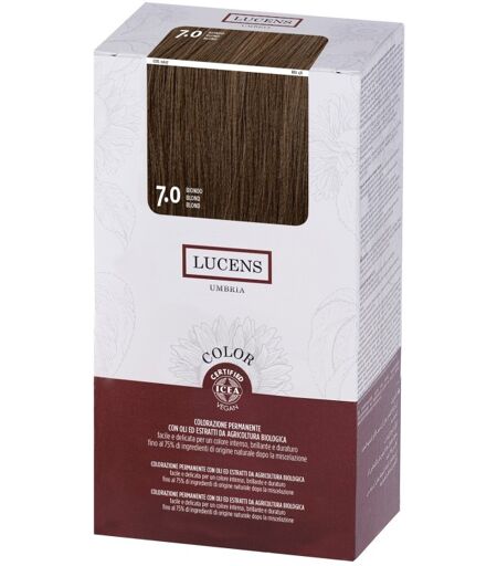 Tinta senza Ammoniaca 7.00 - Biondo Lucens Umbria: Colorazione permanente senza ammoniaca. Dona una copertura perfetta ai capelli bianchi, regalando un colore vivo, omogeneo e brillante. Per capelli colorati. Con olio di cocco, olio di girasole, verbasco, elicriso, lino, camomilla e calendula. Unisci il colore nel tubetto ed il rivelatore, miscela ed applica. Il Tinta senza Ammoniaca 7.00 - Biondo di Lucens Umbria è una colorazione permanente senza ammoniaca per capelli colorati. A base di olio di cocco, olio di girasole, verbasco, elicriso, lino, camomilla e calendula che assicurano una copertura perfetta dei bianchi, donando un colore vivo, omogeneo e brillante. Gli estratti naturali migliorano la tollerabilità del cuoio capelluto, proteggendo ed idratando i capelli durante la colorazione. Consigli d'uso: Versa il contenuto della crema colorata in una ciotola. Mescola insieme all' Attivatore. Distribuisci in maniera uniforme, attenzionando le radici, con l'aiuto di un pennello e lasciando in posa per 35 minuti. INCI AQUA (WATER/EAU), LAURETH-3, CETEARYL ALCOHOL, LAURETH-4, ETHANOLAMINE, POLYSORBATE 80, SORBITAN STEARATE, GLYCOL DISTEARATE, GLYCOL DISTEARATE, SODIUM C14-16 OLEFIN SULFONATE, COCAMIDOPROPYL BETAINE, GLYCERIN, GLYCERYL STEARATE SE, GLYCERYL ISOSTEARATE, COCOS NUCIFERA OIL (COCOS NUCIFERA (COCONUT) OIL), SORBITAN OLEATE, OLEIC ACID, STEARIC ACID, BETAINE, POLYQUATERNIUM-22, HYDROGENATED CASTOR OIL, CETEARETH-20, PALMITIC ACID, SODIUM SULFITE, SODIUM HYDROSULFITE, LECITHIN, TETRASODIUM EDTA, CETEARETH-33, VERBASCUM DENSIFLORUM FLOWER/STEM EXTRACT*, HELICHRYSUM ITALICUM EXTRACT*, COTA TINCTORIA FLOWER/LEAF/STEM EXTRACT*, LINUM USITATISSIMUM SEED EXTRACT (LINUM USITATISSIMUM (LINSEED) SEED EXTRACT)*, CALENDULA OFFICINALIS FLOWER EXTRACT*, HELIANTHUS ANNUUS SEED OIL (HELIANTHUS ANNUUS (SUNFLOWER) SEED OIL)*, CITRIC ACID, ERYTHORBIC ACID, ETIDRONIC ACID, SODIUM BENZOATE, BENZYL ALCOHOL, POTASSIUM SORBATE, TOLUENE-2,5-DIAMINE SULFATE, 4-CHLORORESORCINOL, 2-METHYLRESORCINOL, PHENYL METHYL PYRAZOLONE, m-AMINOPHENOL, p-METHYLAMINOPHENOL SULFATE, 2,4-DIAMINOPHENOXYETHANOL HCL. *Da agricoltura biologica Controlliamo con cura le descrizioni dei nostri prodotti ma alcuni dati riportati sulla confezione del prodotto (INCI, consigli di utilizzo, certificazioni) possono variare in base agli aggiornamenti dei produttori. Non sempre questi aggiornamenti ci vengono comunicati e può capitare che le informazioni sulla confezione differiscano da quelle riportate qui sul sito. Ti chiediamo perciò di fare sempre riferimento alle informazioni che trovi sul prodotto. Le immagini riportate hanno uno scopo puramente indicativo e possono essere soggette a variazioni da parte dei produttori. ...