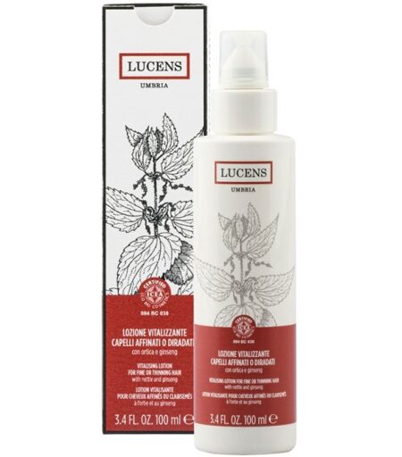 Lozione Vitalizzante Lucens Umbria: Trattamento antietà e rivitalizzantePurifica e tonifica la cuta, assicurando un'azione antiossidante. Per la caduta dei capelli.Con ortica, ginseng, uva rossa, lino, verbasco, elicriso e camomilla.Applica sul cuoio capelluto con delle leggere pressioni, lascia asciugare all'aria o procedi all'asciugatura. La Lozione Vitalizzante di Lucens Umbria è un trattamento antietà e rivitalizzante per cuoio capelluto. A base di ortica, ginseng, uva rossa, lino, verbasco, elicriso e camomilla dall'azione tonificante e stimolante che aumenta l'idratazione del capello e stimola l'attività del follicolo. Consigli d'uso:Distribuisci sul cuoio capelluto, esercitando leggere pressioni e massaggiando con movimenti circolari finchè non si avverte una leggera pressione. Lascia asciugare all'aria o procedi all'asciugatura. INCIAQUA/WATER/EAU, ALCOHOL DENAT., GLYCERIN, PYRIDOXINE HCL, MENTHOL, HYDROLYZED LUPINE PROTEIN*, HYDROLYZED OLIVE FRUIT*, CAFFEINE, ROSMARINUS OFFICINALIS EXTRACT/ ROSMARINUS OFFICINALIS (ROSEMARY) LEAF EXTRACT*, ZINC SULFATE, PANAX GINSENG EXTRACT/PANAX GINSENG ROOT EXTRACT*, HYDROLYZED GRAPE SKIN*, THYMUS SERPILLUM EXTRACT*, URTICA DIOICA EXTRACT/URTICA DIOICA (NETTLE) EXTRACT*, SERENOA SERRULATA FRUIT EXTRACT, VERBASCUM DENSIFLORUM FLOWER/STEM EXTRACT*, HELICHRYSUM ITALICUM EXTRACT*, COTA TINCTORIA FLOWER/LEAF/STEM EXTRACT*, LINUM USITATISSIMUM SEED EXTRACT/ LINUM USITATISSIMUM (LINSEED) SEED EXTRACT*, CITRIC ACID, GLYCOPROTEINS, BENZYL ALCOHOL, SODIUM BENZOATE, POTASSIUM SORBATE, LINALOOL, LIMONENE. *da agricoltura biologica Controlliamo con cura le descrizioni dei nostri prodotti ma alcuni dati riportati sulla confezione del prodotto (INCI, consigli di utilizzo, certificazioni) possono variare in base agli aggiornamenti dei produttori. Non sempre questi aggiornamenti ci vengono comunicati e può capitare che le informazioni sulla confezione differiscano da quelle riportate qui sul sito. Ti chiediamo perciò di fare sempre riferimento alle informazioni che trovi sul prodotto. Le immagini riportate hanno uno scopo puramente indicativo e possono essere soggette a variazioni da parte dei produttori. ...