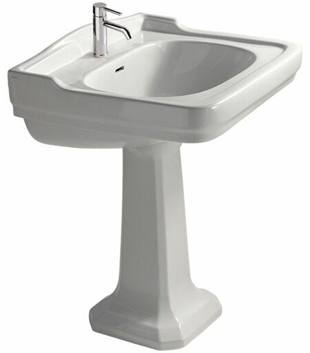 Lavabo sospeso/su colonna o su mobile tre fori bianco lucido della serie Ethos di Ceramica Galassia. Il lavabo ha le seguenti caratteristiche:è in ceramica, che è il materiale migliore per il bagno sia per resistenza che per igiene; ha il fissaggio incluso; ha le seguenti dimensioni: cm. 71x58 ...