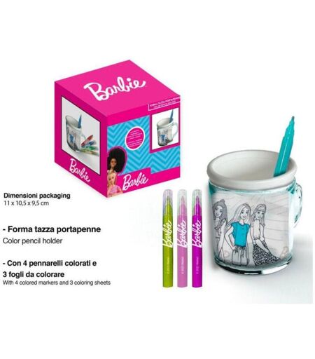TRADE SHOP TRAESIO - Tazza Portapenne Da Colorare Barbie Bicchiere Pennarelli Colori Idea Regalo -