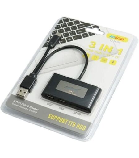 HUB USB 2 IN 1 A/M + TYPE-C ANDOWL Q-JC89Basso consumo energetico, trasmissione super veloce e design semplice.Indicatore di retroilluminazione blu e indicatore di lettura della cartaUscita porte USB 2.0 standard (A/F)Compatibile con USB 1.1, 2.0Disposizione parallela dell'interfaccia e interferenza reciproca, l'idoneità è forte, buona compatibilitàUmidità di lavoro: dal 10% al 90%Tensione di funzionamento: DC 5VCorrente di lavoro: DC500-900mASistema di supporto: Windows 95/98/2000/ME/2003/XP/Vista o Mac OS 9.1 sopra (il sistemaWindows95/98 deve installare il driver) ...