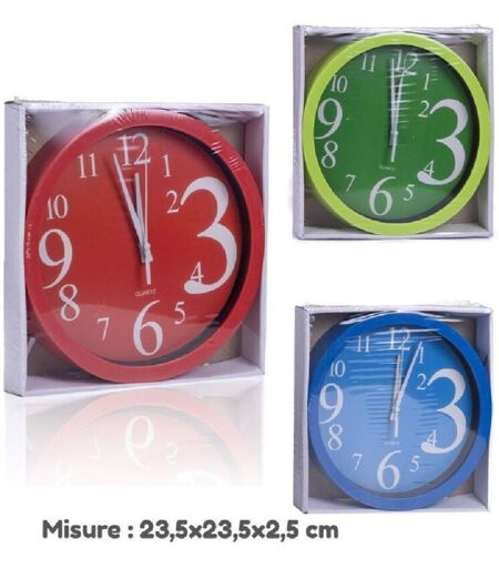 TRADE SHOP TRAESIO - Orologio Da Parete Quarzo Muro Tondo Colorato Casa Arredamento 23.5x23.5x2.5cm -
