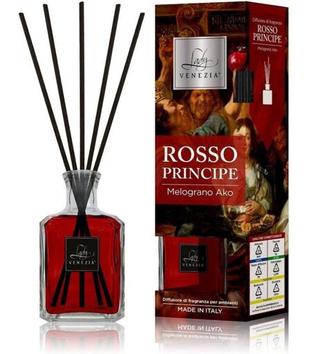 TRADE SHOP TRAESIO - Maxi Diffusore Ambiente Bastoncini Fragranza Rosso Principe Melograno Ako 250 Ml -